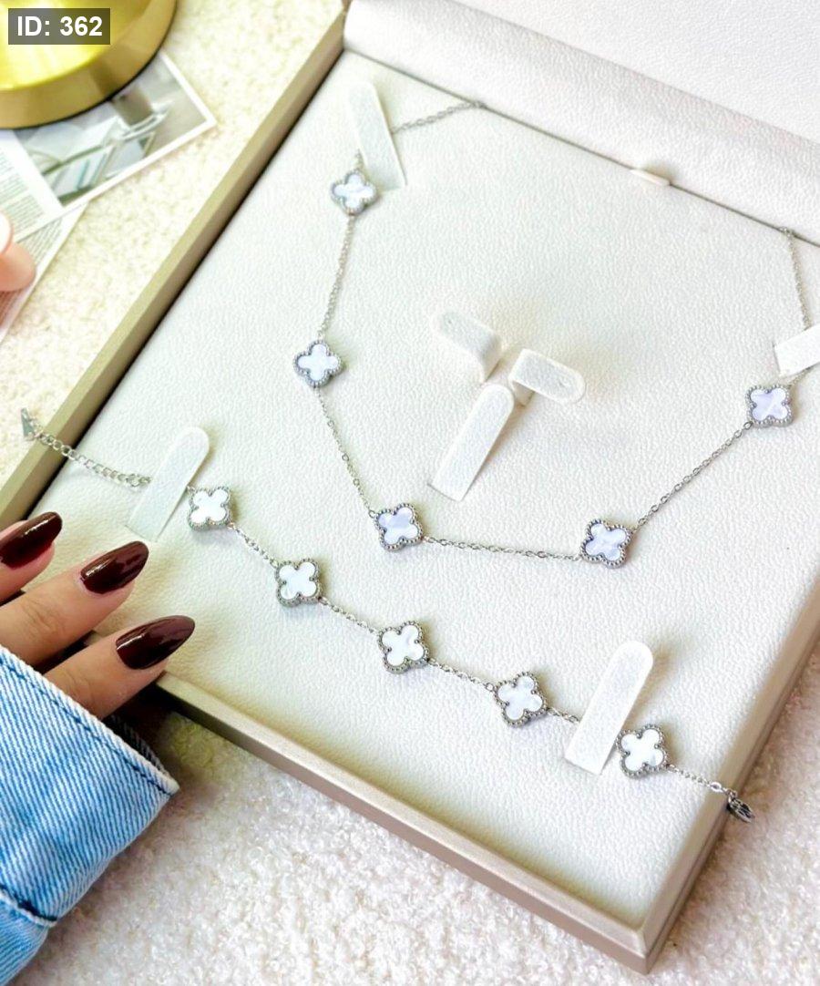 طقم فان كليف أبيض بحواف مزيّنة
