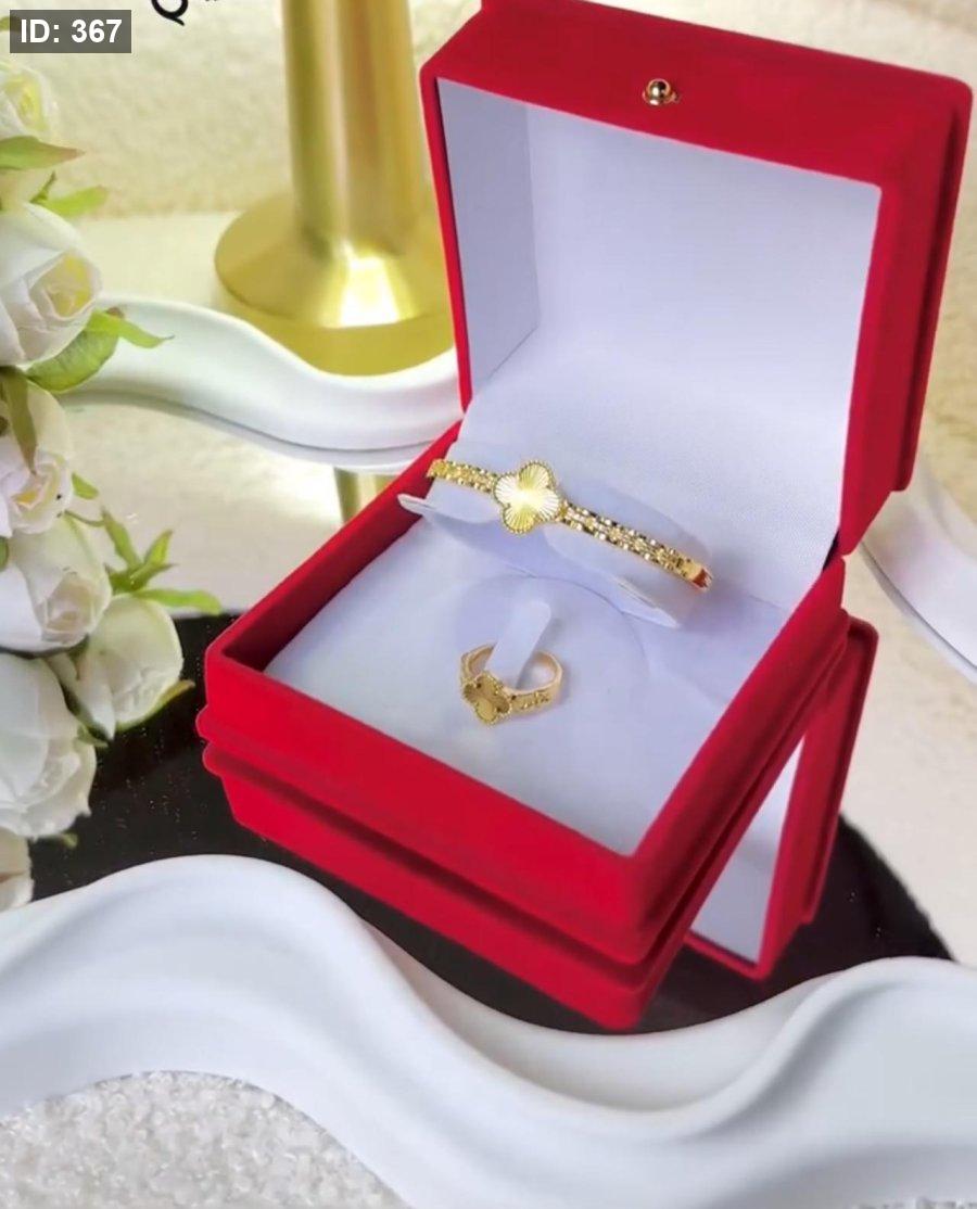 طقم راقي بزخارف شرقية أنثوية 🌸، مطلي بماء الذهب. يتكون من أسورة + خاتم.