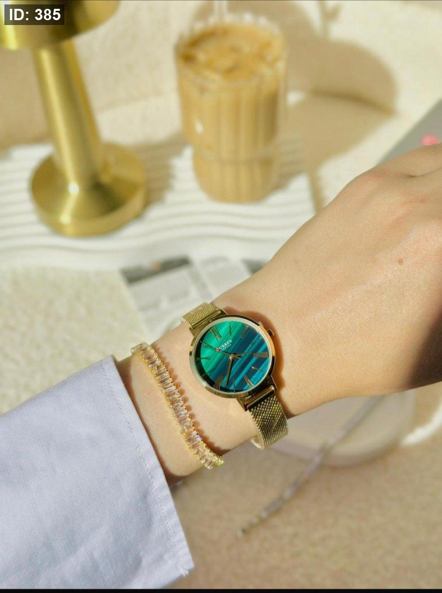 ساعة Curren بوجه أخضر رخامي مع سوار كريستالي