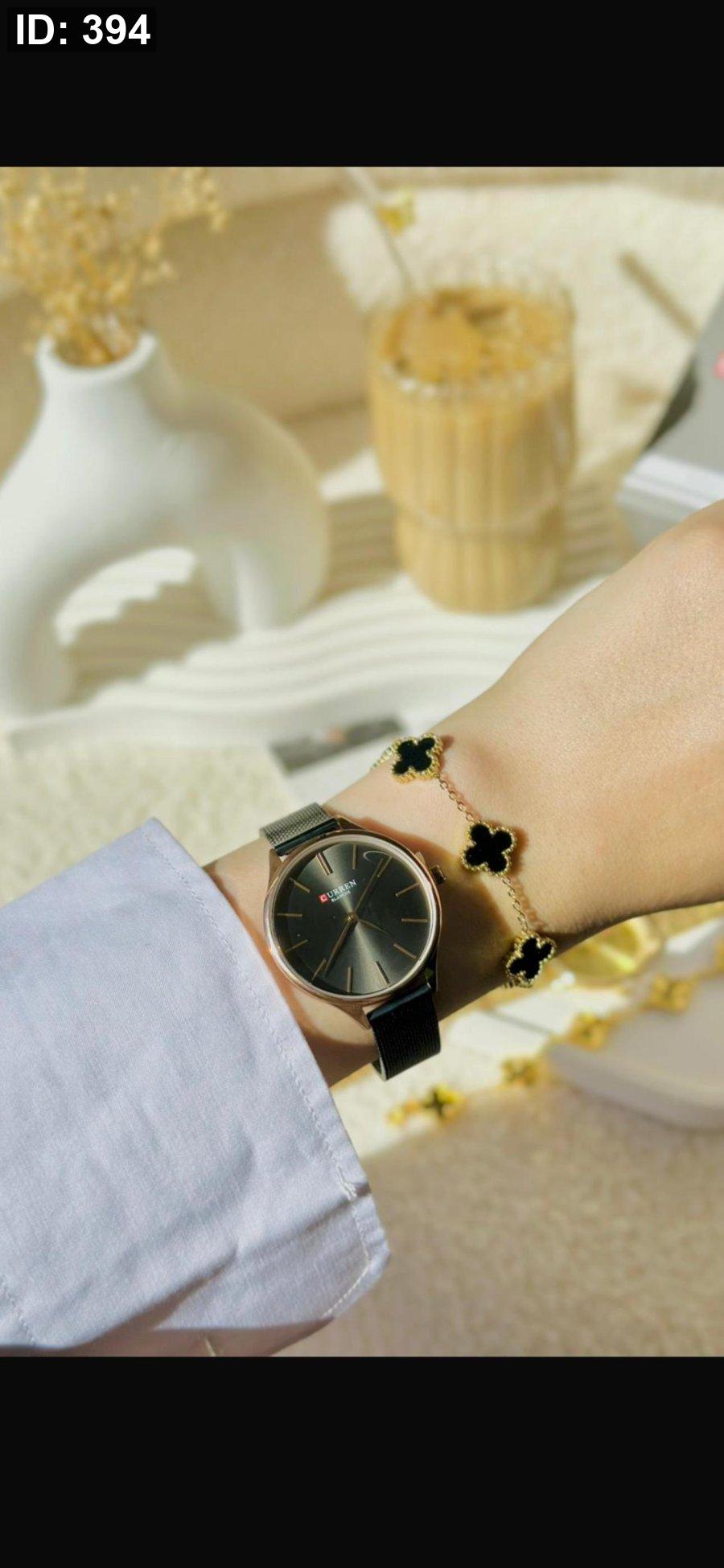 ساعة فريدة بلون أسود فاخر وتصميم عصري أنيق، مع سوار اسود ذهبي